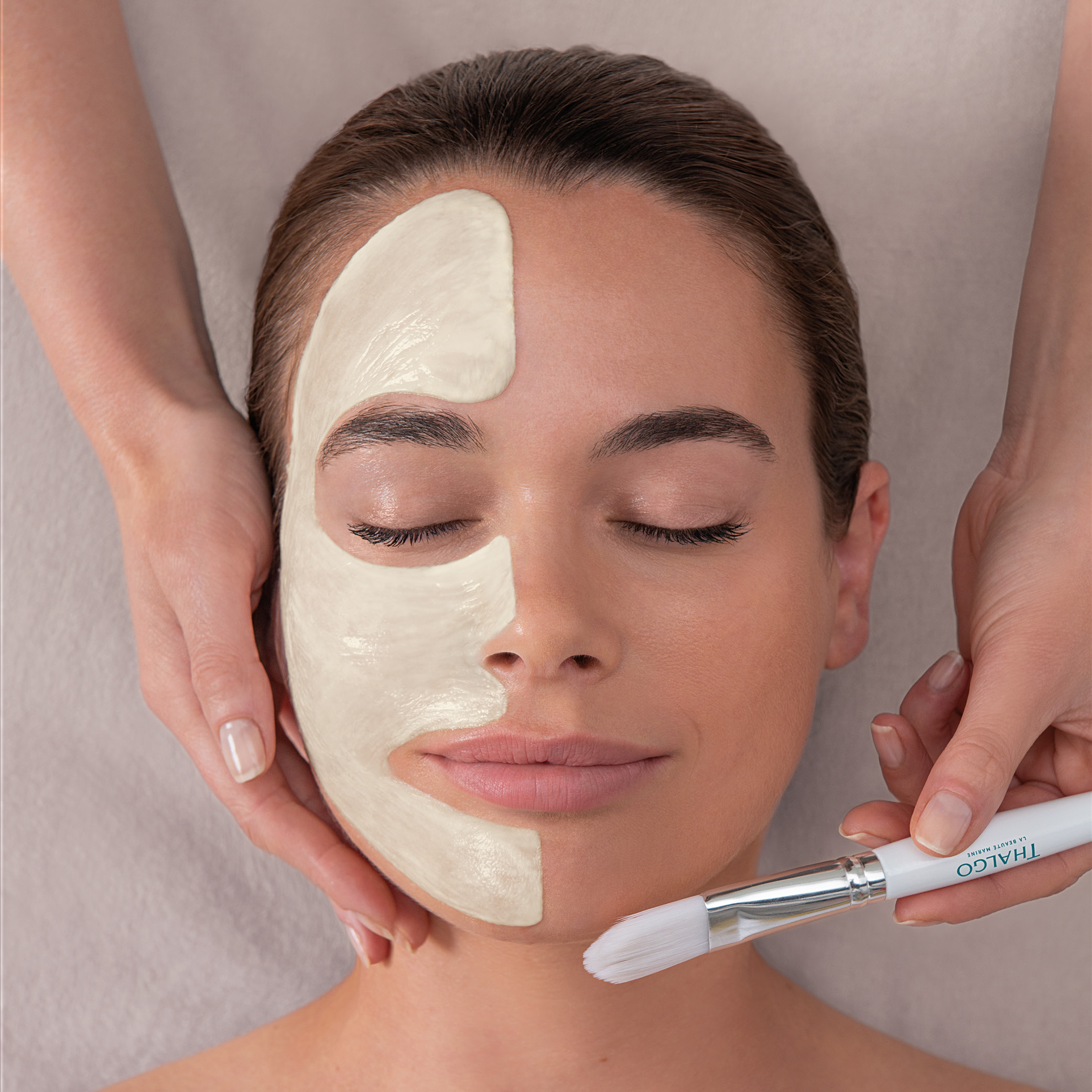 Maritime Wirkstoffe: Braune und grüne Mikroalgen sowie Spurenelemente (u.a. Zink), regulieren die übermäßige Talgproduktion, verfeinern die Poren und wirken antibakteriell.